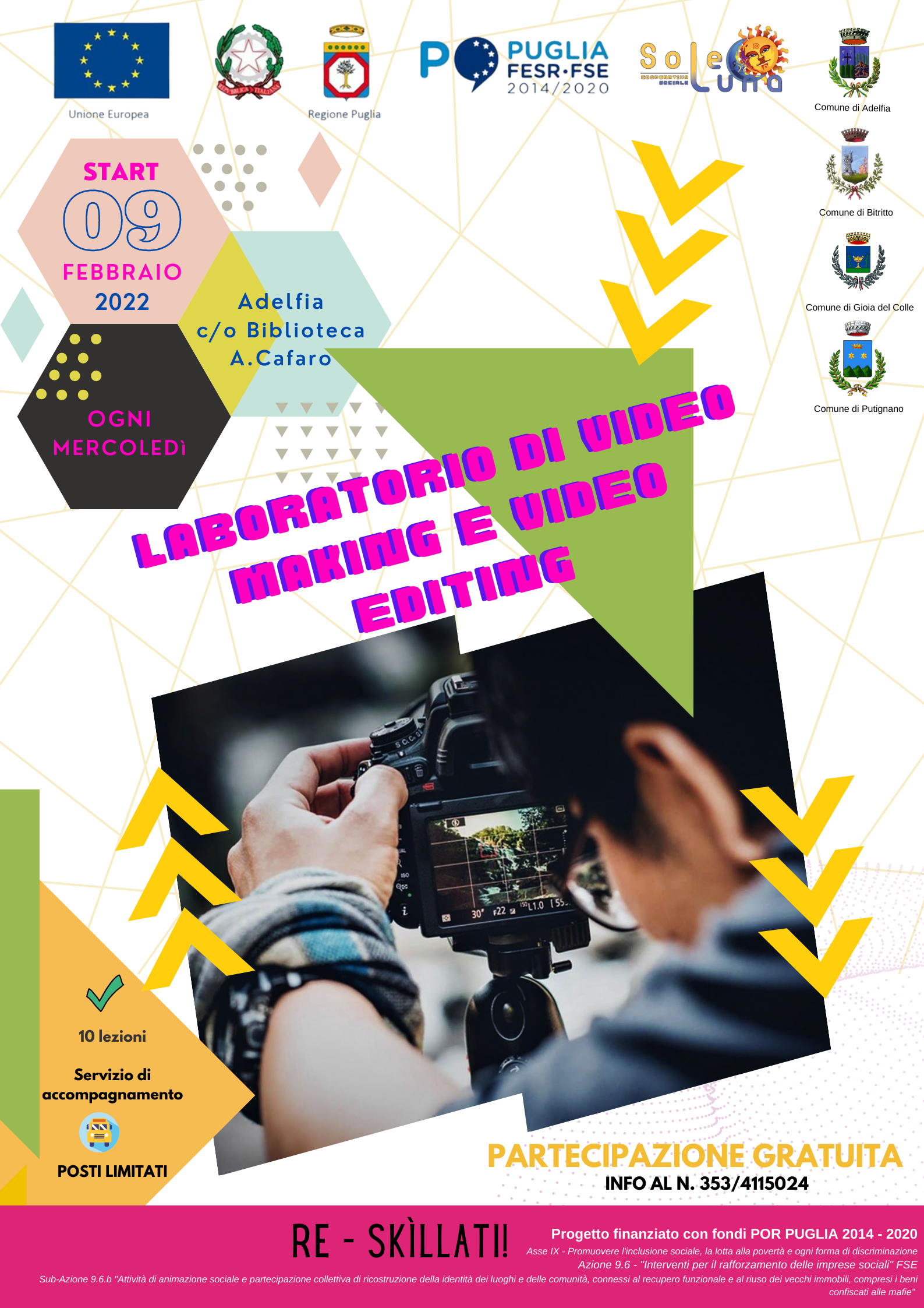 - Il Laboratorio di Video Making e video Editing per conoscere le varie fasi di lavorazione di un video-metraggio, dalla pre-produzione alla post-produzione.